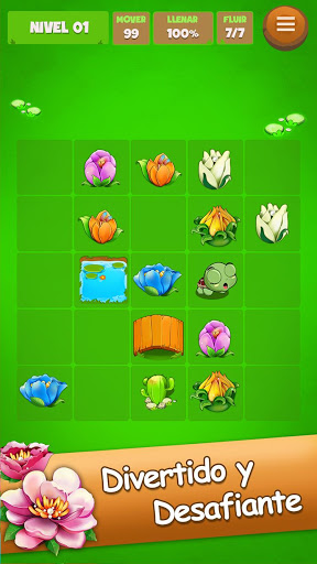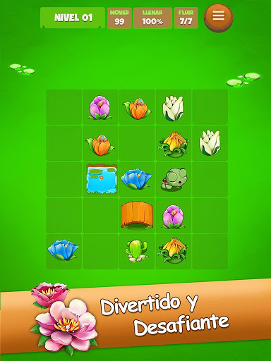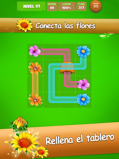 - Conecta con las flores para verlas florecer. Llena el tablero para ganar.