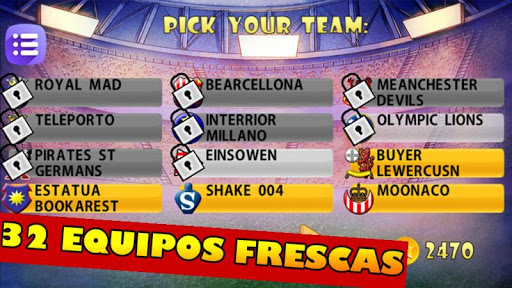 "Footbal Headz Cup" es uno de esos juegos de fútbol que rompe los límites. La acción del fútbol es increíble y lo mantendrá entretenido por mucho tiempo. Seleccione uno de los 32 equipos de fantasía que se ofrecen (64 jugadores) y ¡prepárese para ganar la copa!