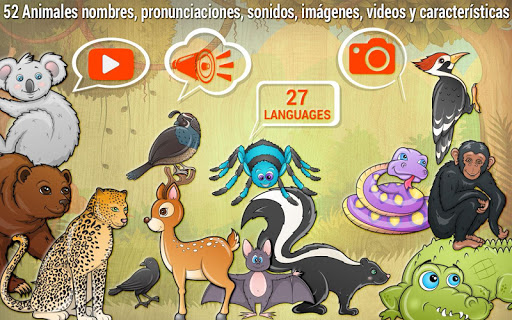 - Los animales cobran vida y juegan el nombre de los animales y sonidos de audio.