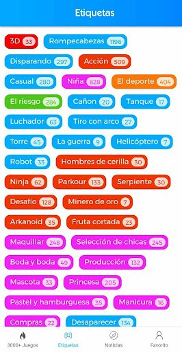 Incluye juegos de todas las categorías como Arcade, Aventura, Deportes, Carreras, Rompecabezas, Lógica, Memoria, Estrategia y Juego de Acción.