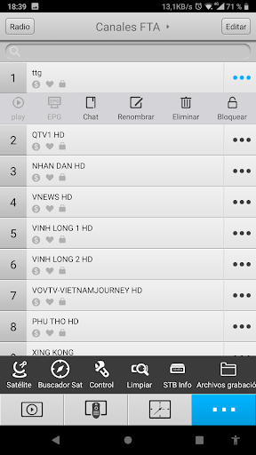 Esta aplicación es un programa cliente para STB (Set Top Box) que puede ser compatible con G-MScreen, funciona con STB a través de WiFi interno.Función principal:1.Search/Switch canales de STB2. Edite los canales de STB, incluidos mover, renombrar, eliminar, bloquear, configurar favoritos, ordenar.3. Ver los canales desde STB por dispositivo móvil con esta aplicación instalada.4. Verificación de los canales de EPG (Guía electrónica de programas).5. Interfaz de control remoto virtual, que incluye botones, giroscopio y panel táctil.6.Agregar / editar / borrar temporizador STB7.Cambie la configuración de STB, temporizador de suspensión, control parental, contraseña, bloqueo / desbloqueo de la pantalla, encendido / apagado, configuración predeterminada de fábrica.8.STB inteligentemente solicita al usuario, el teléfono móvil tiene una llamada que viene9.Surppot Sat a IP, necesita enrutador surpport 150M WiFi.10.Apoyo a SatFinder, la aplicación muestra la señal de señal y el pitido al instalar el plato.11.Apoya a DLNA, para mostrar las imágenes, videos y audio de tu teléfono a la pantalla grande de TV.