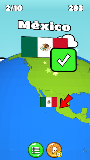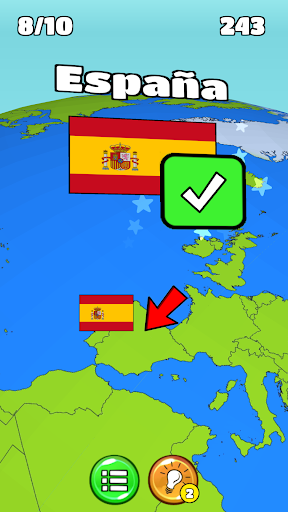 Busca el país por el que pregunta el juego. Busque el país correcto. Si eres rápido y obtienes la respuesta correcta, obtienes más puntos. Cuando terminas un nivel, obtienes acceso al siguiente nivel.