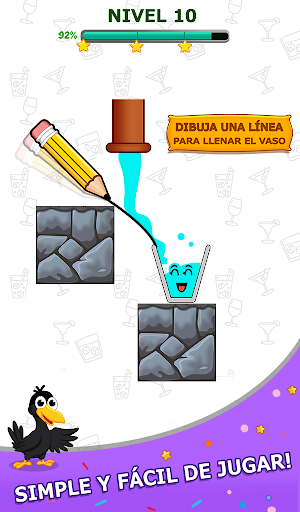 El cuervo tiene sed. Dibuja una línea para llenar el vaso con agua y haz feliz al cuervo.