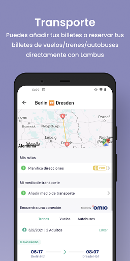 Con nuestra función de Transporte no sólo puedes planificar tus rutas, sino también almacenar o reservar cómodamente tu transporte. Una vez reservados, ¡los billetes se añadirán automáticamente a tus documentos de viaje!