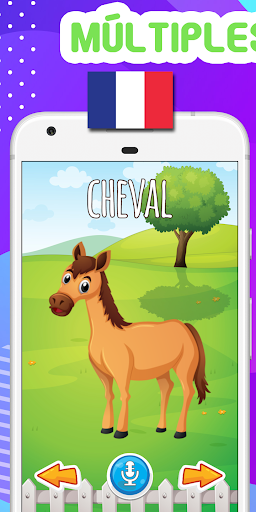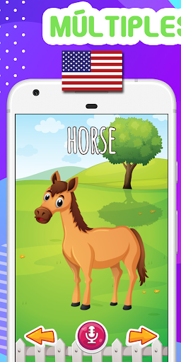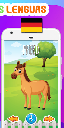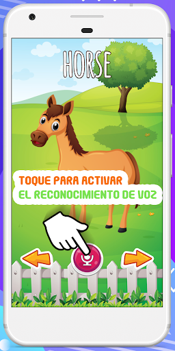 La aplicación Aprender nombres y sonidos de animales también cuenta con reconocimiento de voz para entrenar a niños pequeños y niños a pronunciar los nombres de animales correctos.