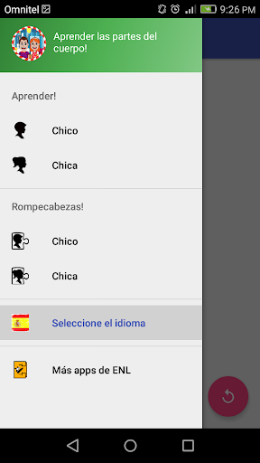- modo de aprendizaje, donde se presenta la imagen interactiva; cuando se toca la parte del cuerpo, se habla el nombre de la parte