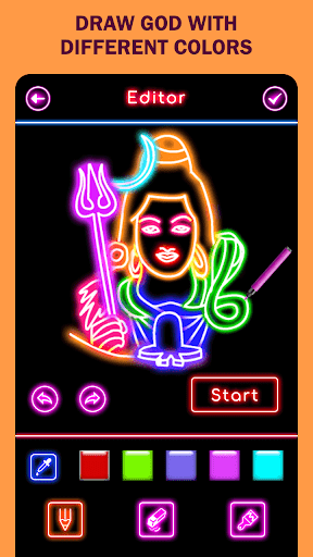 Draw Glow Lord Shiva, Lord Krishna, Lord Ganesha, Lord Saibaba, Lord Vasudeva and more Gods give you endless joy and happiness of life in a creative world that only belongs to yourself. This is the best doodle game for you to learn drawing without any experience and skill.