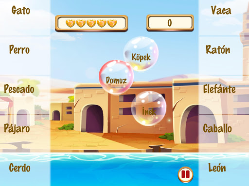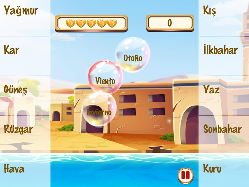 El Baño de Burbujas Turco incluye 630 palabras en turco divididas en 63 retadoras categorías. Solo presiona en una burbuja y oye la palabra o frase dada por el audio nativo y de allí en adelante, solo selecciona la traducción adecuada para romper la burbuja.