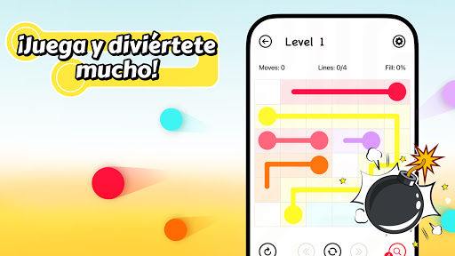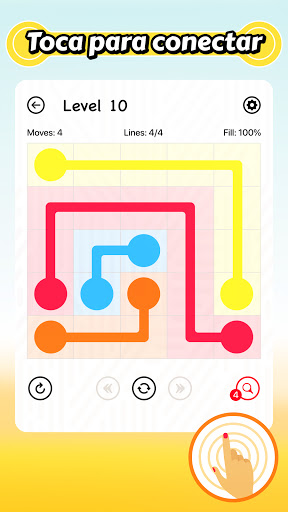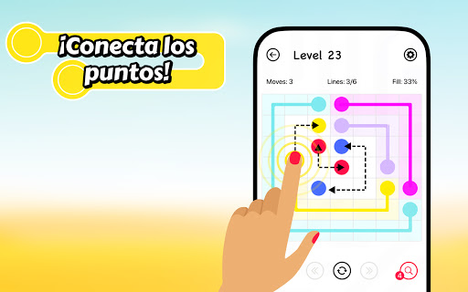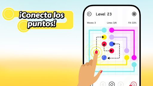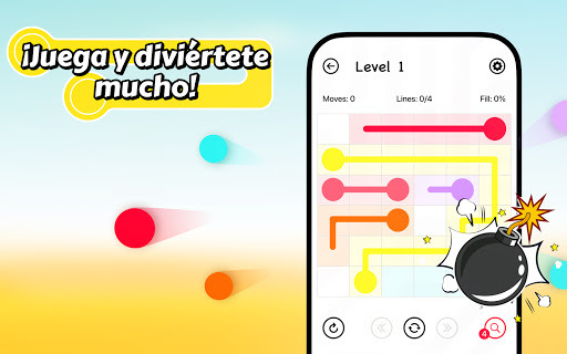 ¡Lined es un juego de acertijos! El objetivo es conectar entre ellos ✏️ todos los puntos que tengan el mismo color ⚫️ 🔴 🔵.