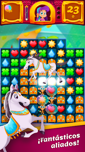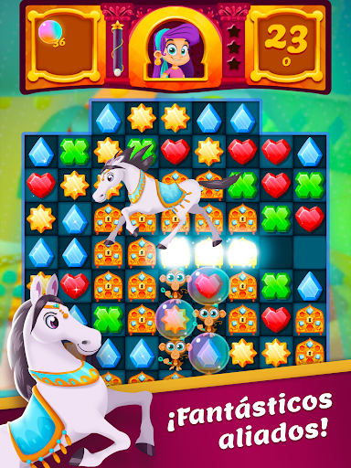 Ven y ayuda a la princesa Aísha a recuperar las gemas y las piedras preciosas de su Reino, y a rescatar a sus lindos animales. ¡Los villanos han robado el valioso tesoro de todo el Reino oriental! Usa tus habilidades de resolución de rompecabezas en este maravilloso y colorido mundo no solo con los fantásticos combos, sino también con la ayuda de los increíbles potenciadores de tus mascotas. ¡Haz aumentar el Poder de la Perla para derrotar a estos villanos descarados en grandes batallas de match-3 y logra que Aísha amplíe sus destrezas!