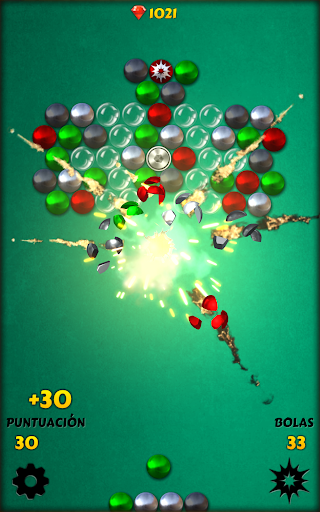 Es como un juego de disparar tres burbujas, pero con física de bolas magnéticas.