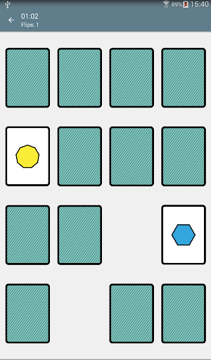 Este juego es un juego de cartas, en el cual todas las cartas son colocadas con las figuras boca abajo y, en cada ronda, dos cartas deben ser volteadas. El objetivo del juego es voltear todas las parejas de cartas iguales.