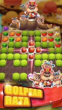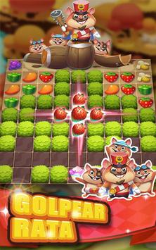 3. Intercambia y agrupa 3 o más frutas adyacentes de la misma para explotar y obtener puntos.