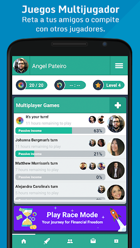 Juega Money Race, el juego de dinero que te muestra cómo hacer todo esto por ti mismo. Money Race enseña inversiones y administración de dinero para todos. Aprende cómo dejar de trabajar por el dinero, y al contrario, ¡Haz que tu dinero trabaje para ti y gana más dinero!