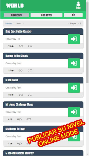 Mr Maker Run Level Editor es un juego de plataforma de correr y saltar, con un creador de niveles. Usted también puede jugar muchos niveles. Pasantías divergentes como castillo, planicies, desierto, montaña, nieve, nubes, castillo, flores y mundo de los dulces. Crea una super aventura y comparte tus niveles.
