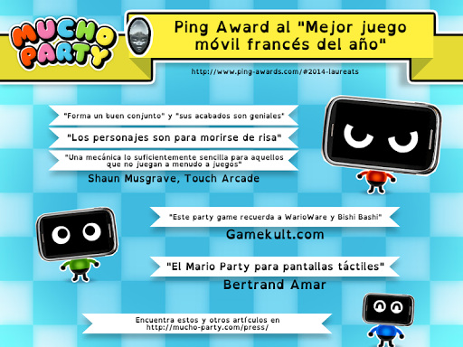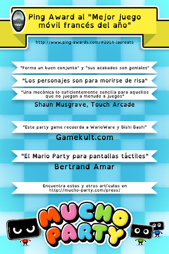 ¡Bienvenidos a la Mucho Party! En familia, en casa, de viaje, con amigos, en el trabajo… esta es la aplicación ideal para jugar entre 2 (o solo) en la misma pantalla, con 5/42 juegos multijugador disponibles.
