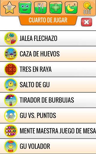 ¡Diviértete con mini juegos emocionantes y gana monedas para comprar artículos y alimentos para tu mascota que habla! Juega Flappy Gu, Mastermind, Tic Tac Toe, Saltar Gu, y otros 6 mini juegos para ver la alegría de poder jugar juego de mascotas virtuales .