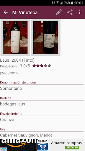 Mi Vinoteca permite crear un registro de los vinos que se van probando, anotando sus características principales y las notas de cata personales. Además puedes buscar en las mas de 11000 fichas de vino y agregarlas a tu colección , también puedes compartir tus vinos con el resto de usuarios.