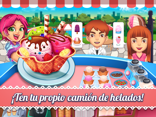 ¡No existe tal cosa como mucho helado! Comienza un refrescante nuevo negocio de helados con tu propio camión y vende muchos tipos de deliciosos postres congelados que con seguridad deleitarán a tus clientes. ¡Lleva tu tienda de helados al siguiente nivel y extiende tus deliciosos gelatos y merengadas por toda la ciudad!