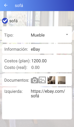 - documentos (por ejemplo, foto de un sofá similar, facturas, etc.)