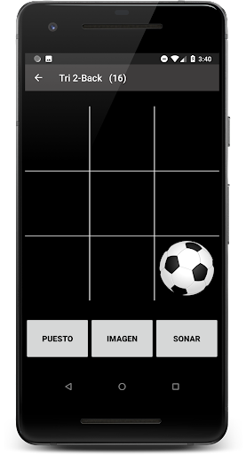 El objetivo del juego es mantener varios elementos en la memoria de trabajo y actualizar activamente estos elementos a medida que avanza el juego. Con cada nueva prueba, presione el botón de coincidencia si el elemento actual coincide con el elemento que ocurrió en un número determinado de intentos en el pasado. El término "n-back" simplemente indica cuántas pruebas (