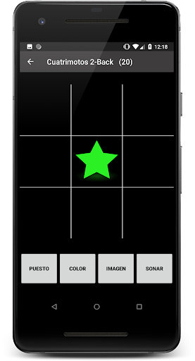 ) en el pasado necesita recordar. De forma predeterminada, comenzará en 2-back, por lo que presione el botón de coincidencia si el elemento actual coincide con el elemento que ocurrió 2 pruebas en el pasado. Para una demostración simple de cómo jugar single 2-back, mira este video: https://www.youtube.com/watch?v=qSPOjA2rR0M .