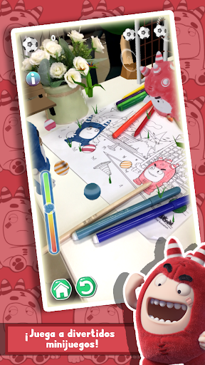 Utiliza los materiales de artes plásticas que quieras para colorear las hojas. Descarga y abre la aplicación Oddbods Live Coloring, y dirige tu cámara a la hoja que hayas coloreado. ¡Tu creación cobrará vida y aparecerá en el mundo real exactamente como la hayas pintado! ¡La tecnología de realidad aumentada te permite combinar la diversión del coloreado tradicional con minijuegos digitales increíbles!