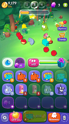 - ¡Usa los hechizos de Om Nom para que la fruta crezca más deprisa y la evolución vaya el doble de rápido!