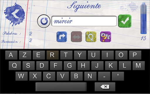 Usted puede probar la ortografía en los diferentes modos de ejercicios "Classic" (juego por un tiempo definido) o "After" (deletrear las mayoría de las palabras sin error).