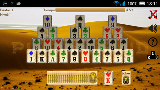El objetivo del juego es eliminar todas las cartas de la pirámide. Puedes eliminar las cartas que tienen un número inferior o superior a la carta en juego. Entre más cartas seguidas elimines sin sacar del mazo más aumentarás tu puntuación. También puedes hacer uso del joker para eliminar cualquier carta