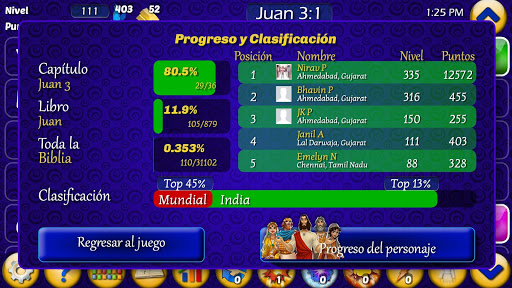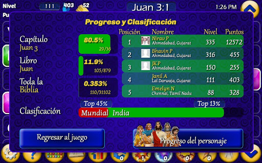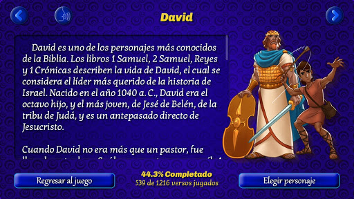 • El progreso de cada personaje te permite comprobar tus avances mientras aprendes sobre tus personajes favoritos en cada versículo.