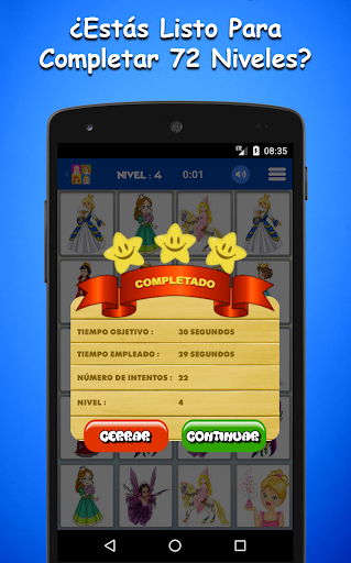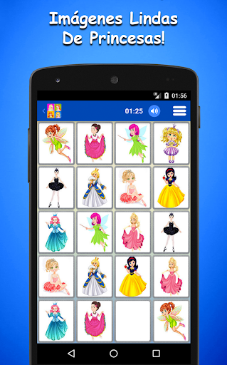 El Juego De Memoria De Princesas Para Niños es uno de los juegos más utilizados en lo que respecta al desarrollo de la inteligencia y la mejora de la memoria visual. Empareja cientos de imágenes en diferentes categorías y desarrolla tu inteligencia, mejorando tu memoria. Es un juego de mesa clásico de nuestra infancia. El juego consta de dos modos: