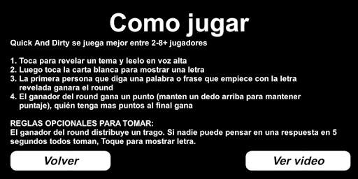 ¡Quick And Dirty es un juego de fiesta ofensivamente divertido! Sale un tema, seguido de una letra. La primera persona en el grupo en gritar una palabra o frase que comienza con esa letra y se ajusta al tema gana.
