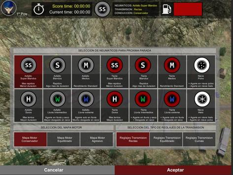 Selecciona el tipo de conducción durante la carrera (Agresivo, equilibrado, conservador) y el mapa motor (rectas, equilibrado y curvas).