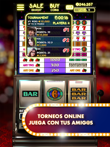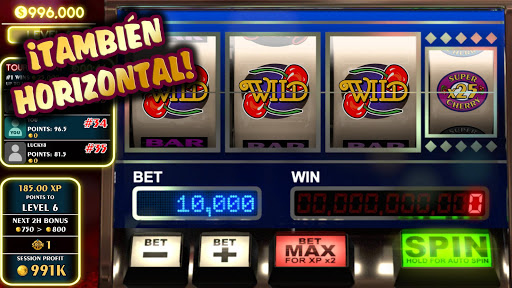 Si estás buscando un juego de tragaperras, gratis, offline y fácil de jugar, Tragaperras reales: Pure Vegas te ofrece la mejor experiencia para ti y tus amigos, con Torneos Online a cualquier hora, 24/7. Acepta el reto, déjate llevar y prepárate para volverte rico.