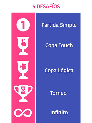 ☆ Copa Lógica: en este modo de juego podrás mejorar tu habilidad y memoria en los tres juegos de lógica.