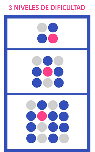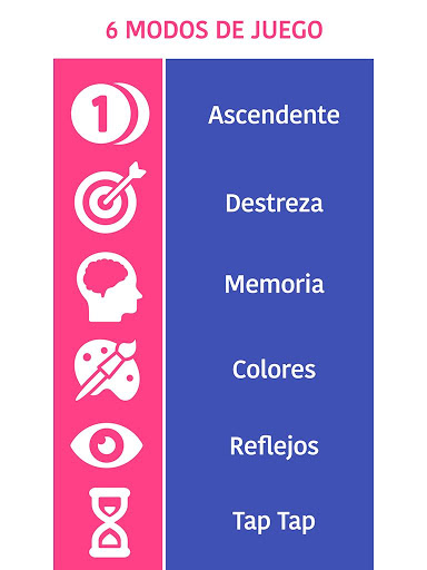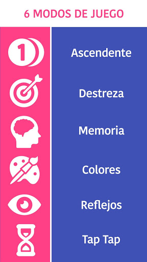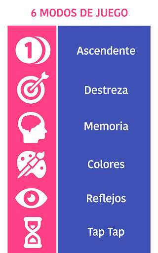 ☆ Memoria: Memoriza el orden de las casillas. Cuando los números desaparezcan toca los círculos del tablero en orden ascendente en el menor tiempo posible.