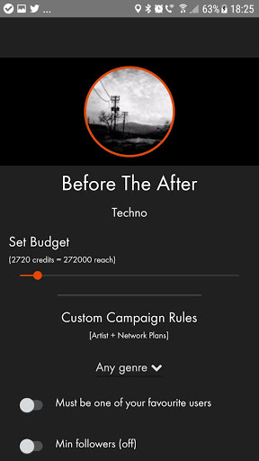 Cuando se le publique la música en nombre de otros artistas, gane 1 crédito por cada 100 seguidores reales que tiene su página SC. También puede comprar créditos usando compras en la aplicación.