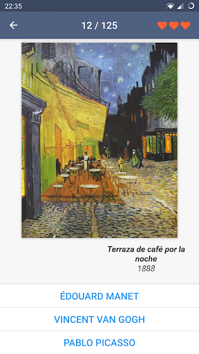 . El juego te mostrará las imágenes más famosas de la historia de las bellas artes. Nombra al artista que podría dibujar la imagen o adivina la respuesta correcta. Cuanto más dura el juego, más difíciles se vuelven las preguntas.