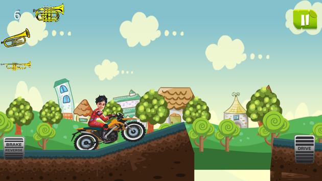 Lets hes SHIva riding his motorcycle isntead of shiva and super bike for as long as possible and help Shiva to advance his bike to avoid obstacles, and help Shiva to get the best point with his new bike.