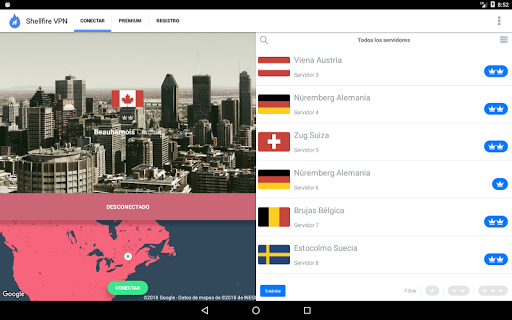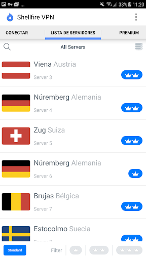 - Elija cualquiera de nuestros servidores en: Austria, Bélgica, Canadá, Dinamarca, Francia, Alemania, Hungría, Hong Kong, Italia, Países Bajos, Polonia, Portugal, Rumanía, Rusia, España, Suecia, Suiza, Reino Unido, Estados Unidos y Turquía.