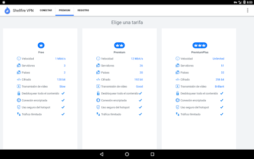 ¡Incluso en redes wifi públicas no seguras! Actualice a Premium para conseguir - Velocidad Superior.