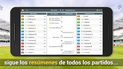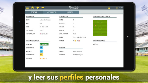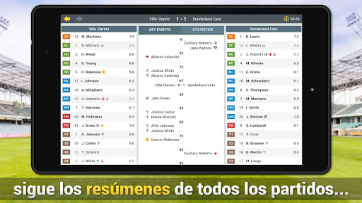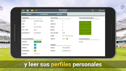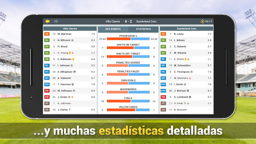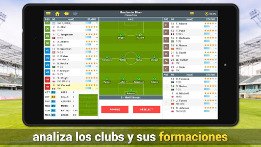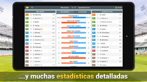 Todo un universo futbolístico se simula en la palma de tu mano, puedes explorar a detalle las formaciones de los equipos y el historial de cada uno de sus jugadores.