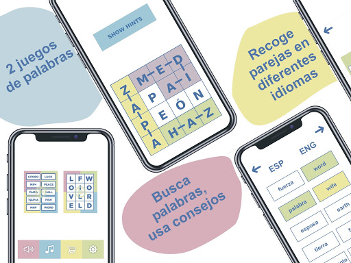 Cualquier combinación de idiomas. ¿Cuántos puzzles hay? Ni siquiera trates de contar. Más que una simple traducción. Un solo idioma es posible. Un solo idioma en juego palabra a palabra - asociaciones de palabras. Un solo idioma en palabras en el juego de cuadrícula - las mismas palabras. Diferentes idiomas - traducción o asociación cercana. Tres niveles de dificultad. Dificultad de forma y dificultad de contenido.
