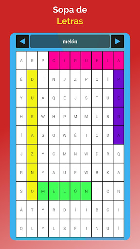 ¿Te gustan las sopas de letras? Busque las palabras ocultas en la sopa de letras y deslice el dedo en las direcciones vertical, horizontal y diagonal tan pronto como las encuentre. ¡Aumenta tu vocabulario y diviértete!