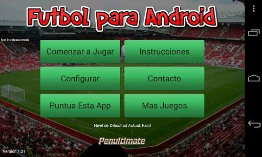 El Futbol nunca habia sido tan divertido! Futbol para Android es el ultimo gran juego para Android que tiene todos los alicientes del futbol de verdad. Controla a tu equipo y enfrentate a la inteligencia artificial del juego. Si marcas un gol o incluso si te marcan alguno puedes ver la repeticion de la jugada para regodearte en tu gloria (o derrota). Quedaras sorprendido por lo bien que juega la inteligencia artificial, tanto al manejar tus jugadores como los del equipo contrario. Desearas que los jugadores verdaderos de tu seleccion nacional pudiesen jugar tan bien.
