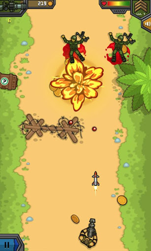 Shoot up waves of enemy soldiers trying to survive. Collect weapons, power-ups and coins. Use coins to upgrade your power and ammunition.