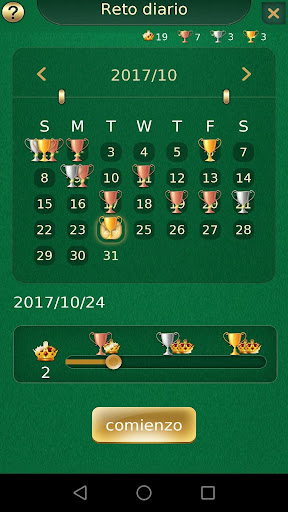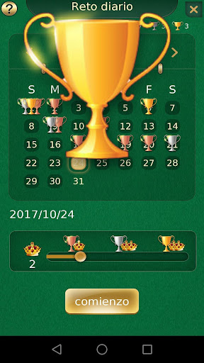 Reto diarios: Tres desafíos esperan para jugar todos los días. El Solitario recompensa a los ganadores con copas de oro / plata / bronce y coronas adicionales. Variante de la tarea diaria de fácil a difícil: un dibujo de tarjeta, un dibujo de tarjeta sin pistas, dibujo de tres cartas.