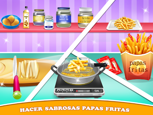 En este juego de puestos de comida callejera, puede preparar su comida favorita de una manera muy fácil. Entonces, ¿a qué espera? Empiece a cocinar su comida favorita en esta cocina virtual. Haga patatas fritas crujientes, fría algunos deliciosos perritos calientes y cocine exquisitas pizzas. Cuando las comidas estén listas, decórelas con diferentes coberturas como le gusta a los niños. Descubra la fiebre de la cocina de manera diferente gracias a este juego de comida.