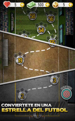 Al superar cada nivel serás recompensado con estrellas como medallas que desvelarán si eres realmente la estrella del campo de fútbol. El público de los estadios se lo hará saber a tu jugador de fútbol, no les decepciones o te abuchearán, pero si marcas un golazo celebrarán el gol por todo lo alto en el estadio de fútbol! Las mejores animaciones y efectos para sentirte dentro del campo al meter gol. Este no es cualquier juego de deporte con medallas y balones.